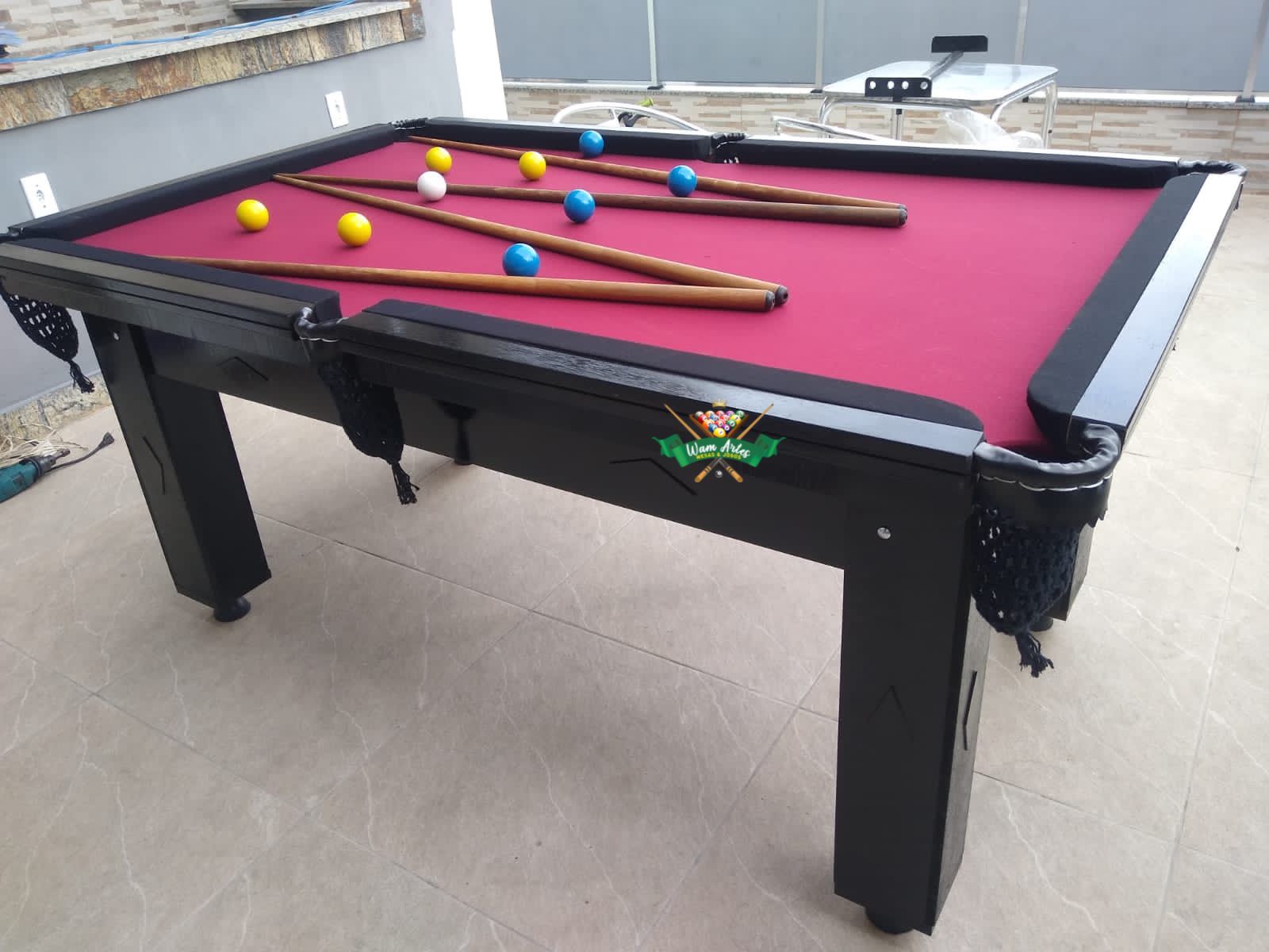 Fazemos, trocas de pano, Acabamento da mesa, troca de pedra, troca de campo, verniz, de jogo de redes e outros, reformamos sinuca, totó, aero hockey, tamancobol e outros.